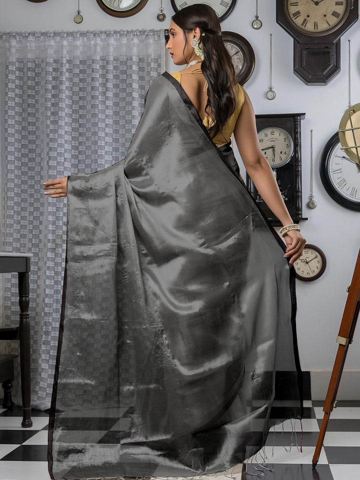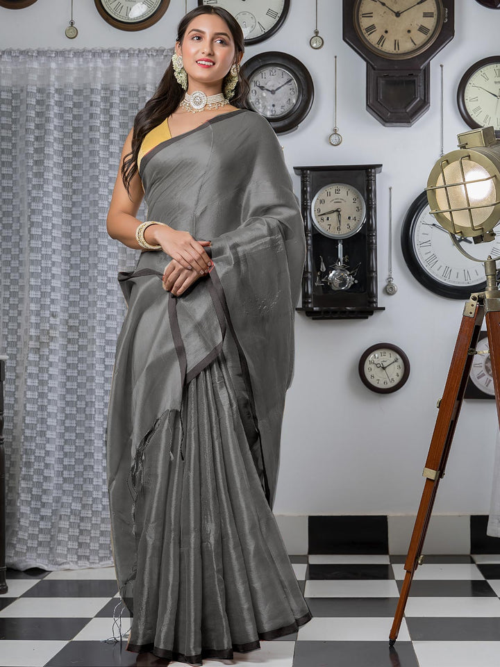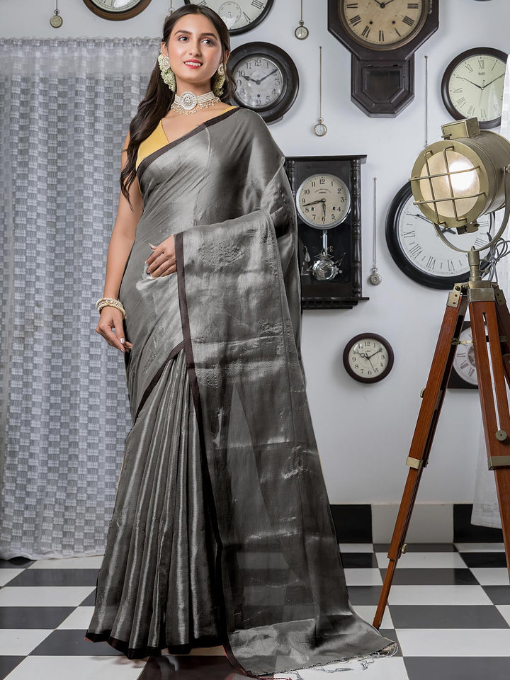 Dark Grey Cotton Tissue Saree - 21897