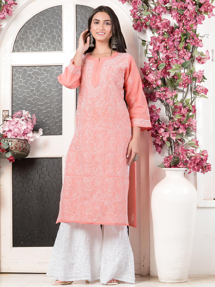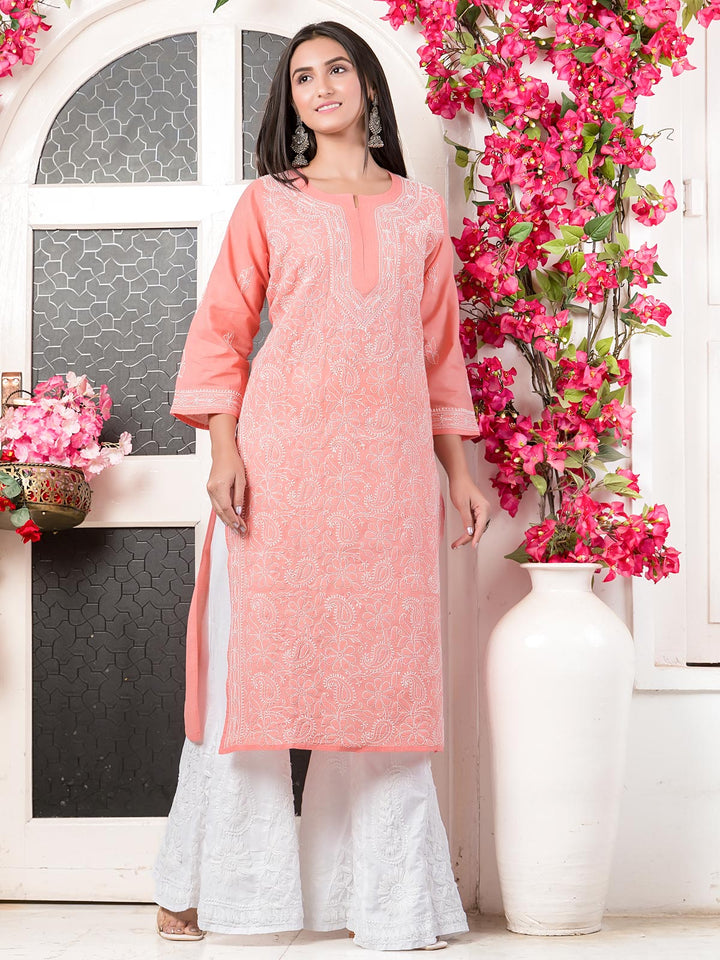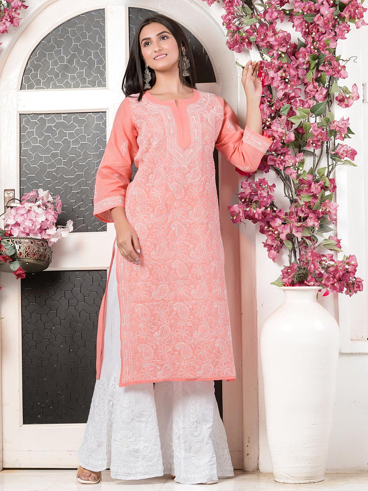 Originating in Lucknow, Uttar Pradesh, Chikankari is an art of imagination and a work of threads. These kurtis have intricate threadwork motifs and patterns all over. Hand-made by the weavers...