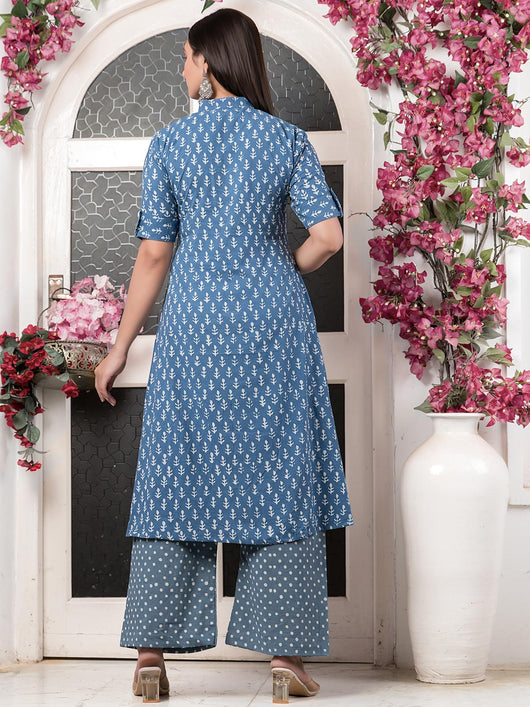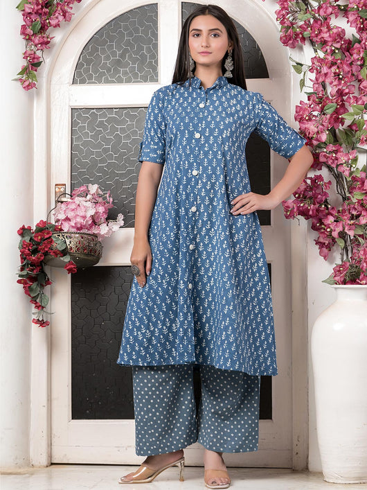 Pure Cotton Dabu Printed Custom Fitted Kurta Set - 21574-02